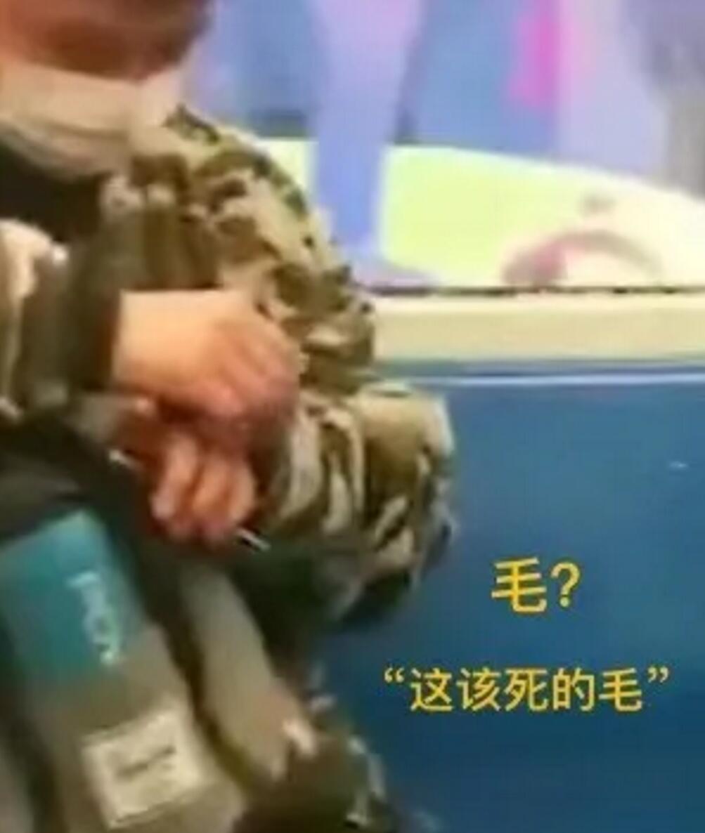坐下的瞬間身上羽絨服一角突然炸裂: