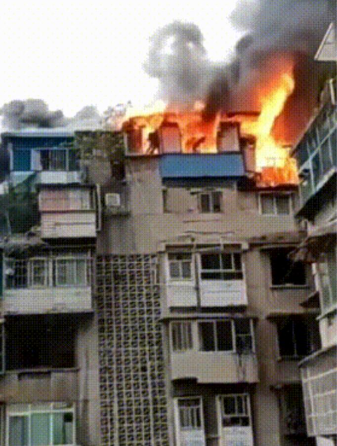 直擊現場:貴陽一住宅樓頂發生大火,一老人避火墜樓身亡!