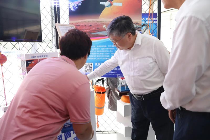 國家工信部科技司一級巡視員畢開春、山東省工信廳一級巡視員羅新軍、青島市副市長耿濤等領導蒞臨海麗雅展位,對集團“海麗安心”安全應急產品、“蛟龍”高端特種繩纜裝備給予肯定。
