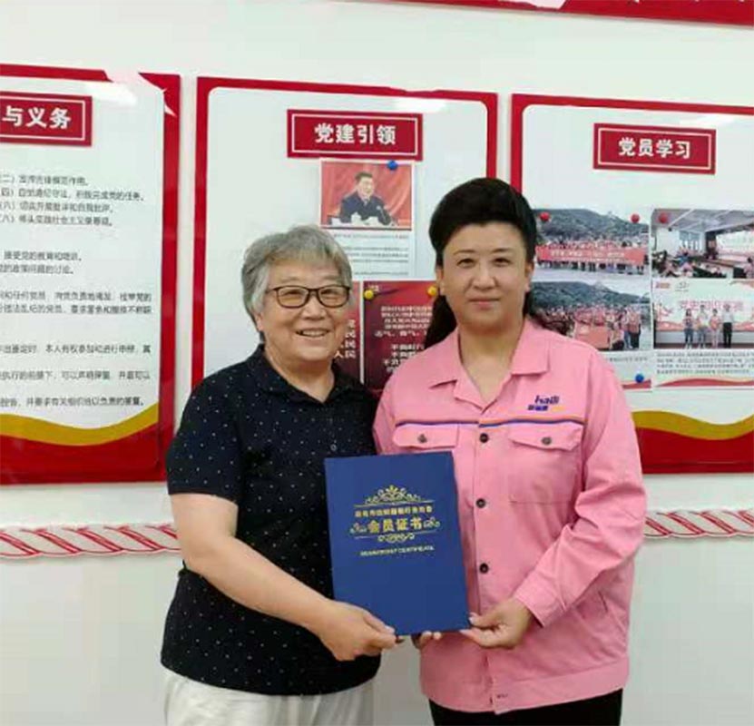 鄭明梅女士代表協(xié)會(huì)向張旭明董事長(zhǎng)頒發(fā)青島市紡織服裝行業(yè)協(xié)會(huì)第六屆理事會(huì)會(huì)員證書
