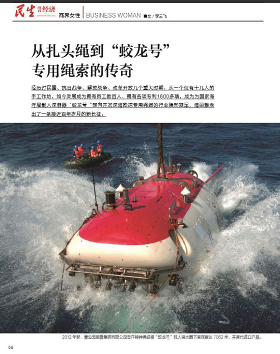 青島海麗雅集團(tuán)94年專注一根繩子,在傳統(tǒng)與創(chuàng)新之間尋求突破,不斷為繩纜注入科技力量。公司完成了從純手工生產(chǎn)扎頭繩到為國家海洋科考船“大洋一號”、載人潛水器“蛟龍?zhí)?rdquo;等尖端領(lǐng)域研發(fā)、配備高科技特種繩纜,再到應(yīng)急自救產(chǎn)業(yè)的進(jìn)化,實現(xiàn)了從“中國制造”到“中國質(zhì)造”。