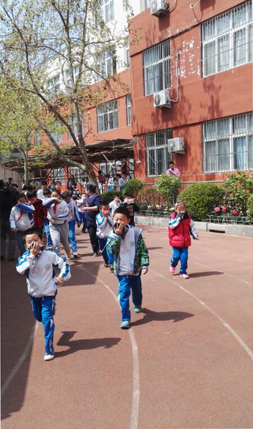 除了傳統(tǒng)的理論知識外,培訓(xùn)中心應(yīng)急專業(yè)講師為學(xué)生們量身定制校園防踩踏、校園火災(zāi)疏散逃生演習(xí)。在逃生的過程中,除了及時、正確的撥打119報警電話外,學(xué)生們忙而不亂、活用理論知識,借助濕毛巾、消防過濾式自救呼吸器、滅火毯等自救工具緊張而有序地進行“逃生”,用時不到3分鐘,600余名師生安全“逃生”到空曠的地方。