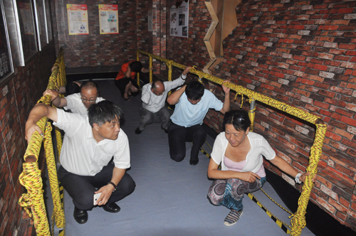 那日蘇副社長一行體驗(yàn)“3-6級”地震項(xiàng)目