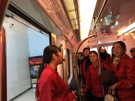 學員在青島市應急安全體驗培訓中心進行地鐵應急逃生演練