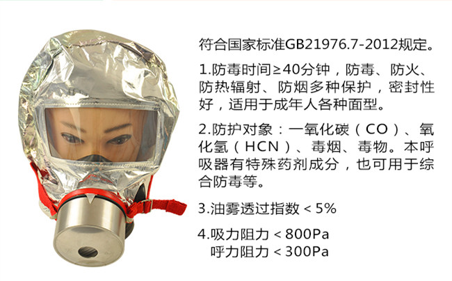 1、濾芯為進口觸酶霍加拉特,充分過濾濃煙中的有害氣體,提供40分鐘的有氧呼吸;