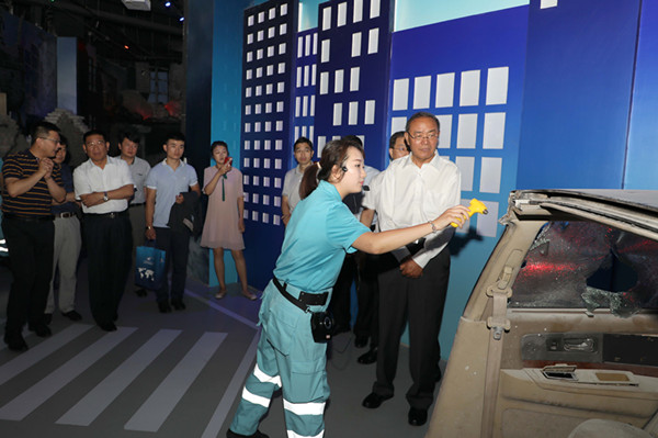 中國應急管理學會領導一行考察消防安全體驗區,就高層火災逃生工具逃生繩使用 災難警示教育等進行考察