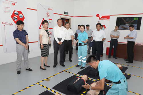 2019年7月16日,國家行政學院原副院長、現任中國應急管理學會會長洪毅等領導一行蒞臨西海岸基地參觀指導,就全國領先的“體驗式”應急安全教育培訓模式及應急裝備進行了考察。海麗雅集團董事長張旭明、億和海麗總經理徐傳龍陪同接待。