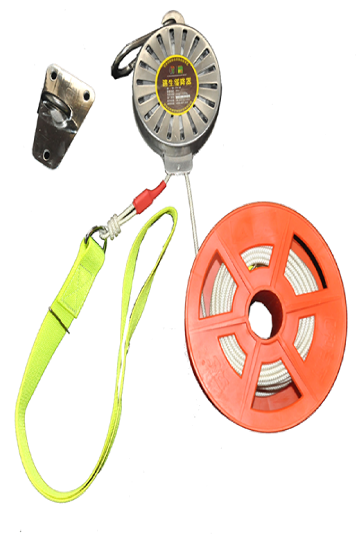 ④ 緩降器可以重復使用,一個人下降到地面上后,樓上的人可以用卷盤把繩索卷回去,繼續使用。建議緩降器單人使用,更加安全一點。