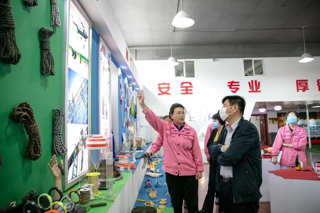 張旭明向楊長軍一行介紹了集團(tuán)發(fā)展歷程、創(chuàng)新升級(jí)與人才團(tuán)隊(duì)建設(shè)等情況。考察團(tuán)現(xiàn)場(chǎng)體驗(yàn)了集團(tuán)應(yīng)急安全培訓(xùn)項(xiàng)目,并對(duì)公司特種繩纜的研發(fā)與應(yīng)用有了深入的了解。