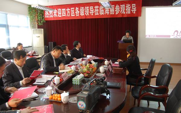 20101228四方區李奉利區長等各位領導蒞臨億和海麗參觀指導,董事長張旭明、書記崔俊芬和企劃部部長鄭文嬌進行了接待工作。在張旭明董事長的帶領下,李奉利等領導參觀了公司新產品樣品間,對公司新產品的研發給予了肯定。