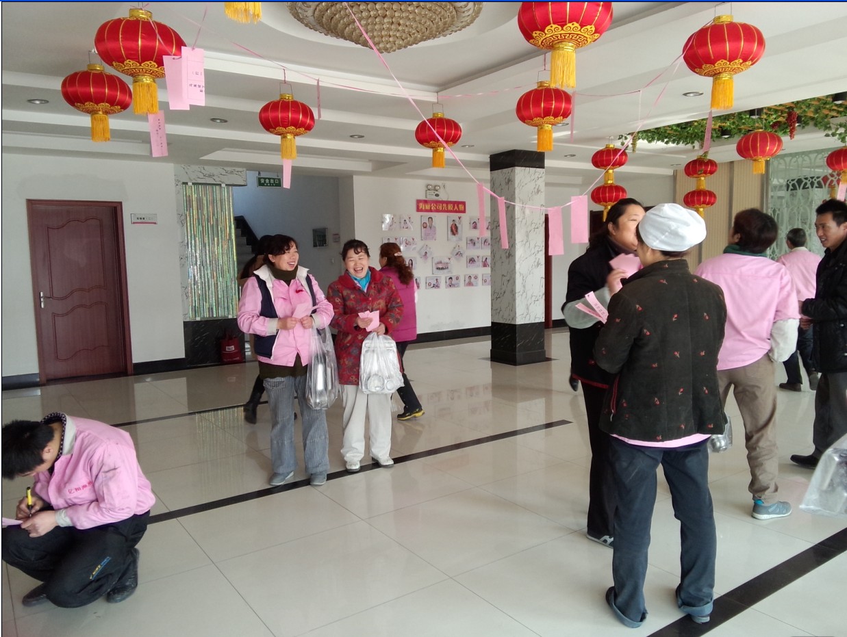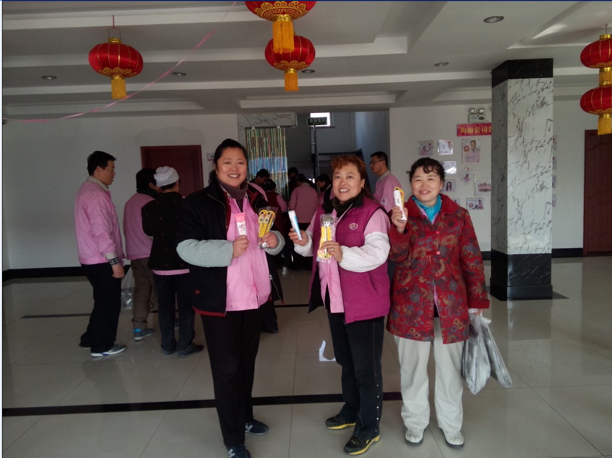 鬧元宵:“每逢佳節(jié)倍思親”, 節(jié)日當(dāng)天,因公司非本市員工不能與家人團(tuán)聚共渡佳節(jié),在董事長(zhǎng)提議下,黨支部副書記、工委主席崔俊芬女士帶領(lǐng)大家一起,專門為外來務(wù)工人員和在公司住宿的大學(xué)生煮元宵、包水餃,并同大家一起過節(jié)。領(lǐng)導(dǎo)的體貼和關(guān)懷,讓大家切身感受到“海麗大家庭”的溫暖。