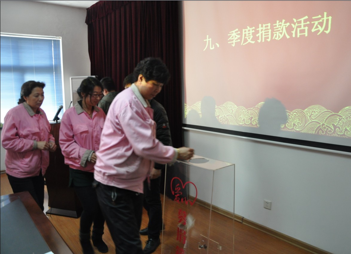 會中,全體培訓人員通過朗誦《海麗公司八榮八恥》、合唱《海麗之歌》、觀看公司宣傳片,以及愛心基金會季度捐款活動,受到了海麗濃厚文化的潛移默化影響,更增加了對企業(yè)的熱愛之情。