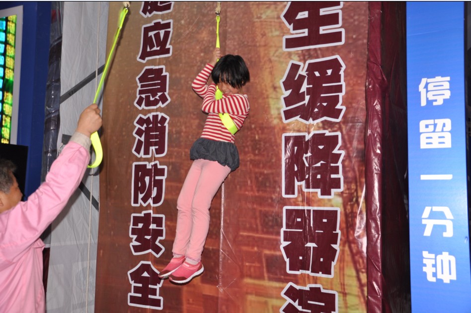 展會上,海麗集團的子公司-青島億和海麗安防科技有限公司不僅展示了最先進、實用的應急自救產品,還設立了煙霧逃生帳篷、高層樓宇救生緩降器等應急自救體驗區供市民免費體驗,讓大家通過切身體驗的方式,輕松掌握應急消防常識和自救逃生技能。這種新穎而又充滿刺激的體驗方式,引起了不少參觀者的興趣和圍觀。其中不乏勇敢的小朋友,大家都躍躍欲試,紛紛報名體驗。