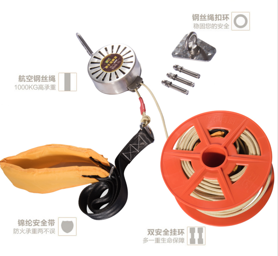 逃生緩降器由掛鉤(或吊環)、吊帶、繩索及速度控制等組成,是一種可使人沿(隨)繩(帶)緩慢下降的安全營救裝置。它可用專用安裝器具安裝在建筑物窗口、陽臺或樓房平頂等處,也可安裝在舉高消防車上,營救處于高層建筑物火場上的受難人員。高空逃生背包好還是緩降器好?