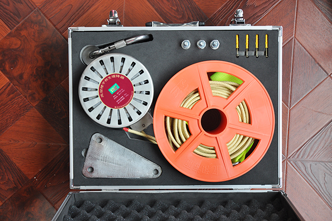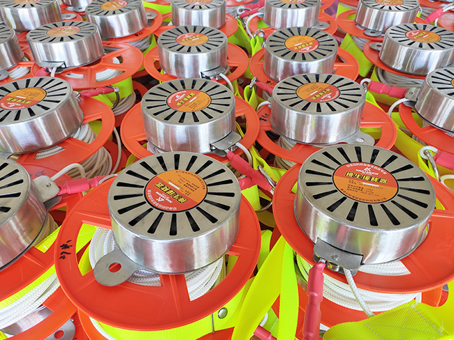 五、擁有兩項發明專利:耐高溫性能防火繩索瞬時耐高溫可達500攝氏度,內由航空鋼絲、外由進口凱夫拉包芯編織制成,耐磨性、防切割性為傳統產品兩倍以上;自冷卻功能:逃生緩降器獨特的結構設計可有效控制逃生緩降器在連續使用時內部溫度的升高(保持在60攝氏度以內),延長使用壽命;