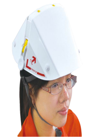 可折疊設計,緊急情況下打開兩側的鎖扣,支撐開戴在頭上逃生,可以有效防止墜落物對頭部造成的損傷。